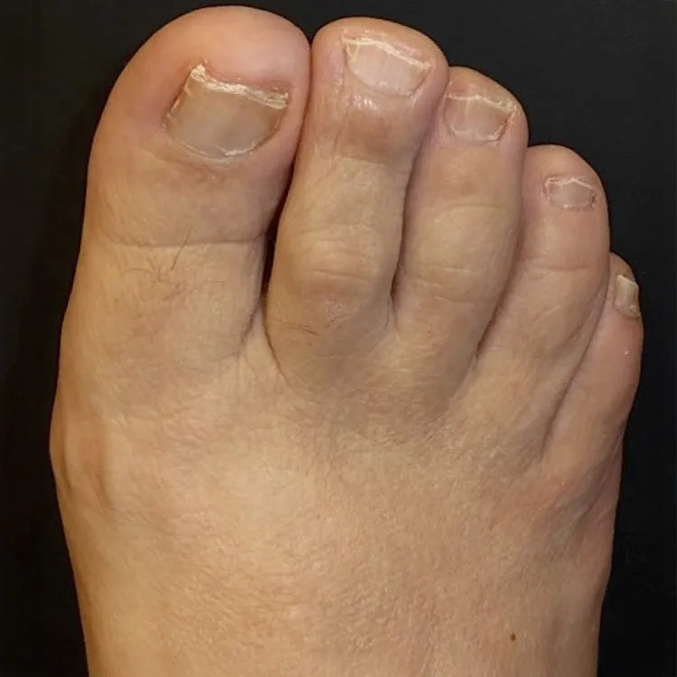 Ideally, your nails should look strong and clear. Discoloration and thickening often occur when the natural balance and appearance of the nail are disturbed, leading to a dull or damaged look.